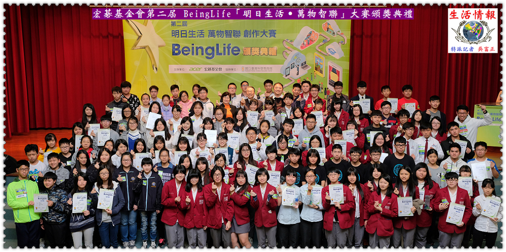 【生活情報-記者吳富正、湯佳寧/2018.02.28.台北報導】 宏碁基金會和國立臺灣科學教育館共同舉辦第二屆 BeingLife「明日生活,萬物智聯」創作大賽,2/28於國立臺灣科學教育館舉行頒獎典禮,宏碁集團創辦人暨基金會施振榮董事長、國立臺灣科學教育館陳雪玉館長親臨現場授獎;為了鼓勵學生集思實作、動手研發產品,今年除延續第一屆「計劃書類」、「影片類」作品外,更增列創作實作組,讓學子們進一步思考使用者的實質需求和體驗。