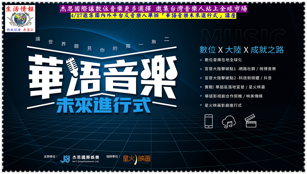 【生活情報-記者吳富正、湯佳寧/2018.04.11.台北報導】 根據RIAA(美國唱片協會)的資料,以美國市場為例,受益於數位音樂市場連續兩年的大幅度成長,而讓這個全球最大的音樂市場,在串流音樂年度收益也成長了12.6%。在Spotify4月3日上市話題之後,回顧最有潛力的亞太音樂市場,Spotify與騰訊換股、KKBOX與網易雲音樂的聯盟合作、大陸廣電總局更積極促成當地版權交互授權…風雲詭譎的市場氣氛之下,數位音樂市場在泛亞地區的激烈變化,讓一直以來居於華語音樂領導地位的台灣音樂業者也積極尋求新的出路。