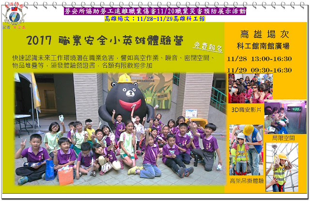 勞安所協助勞工遠離職業傷害11/20-21職業災害預防展示 11/28-29高雄科工館網路報名