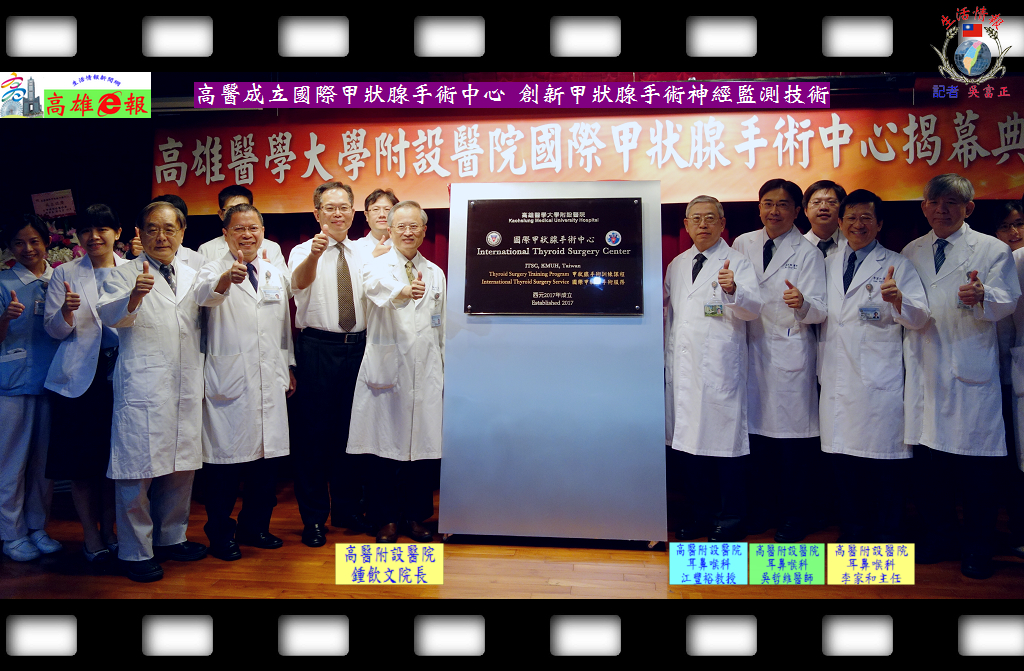 高雄醫學大學附設醫院耳鼻喉科江豐裕教授、吳哲維醫師出席8/14國際甲狀腺手術中心揭幕表示,喉返神經麻痺是甲狀腺手術最常見的併發症,此併發症常會造成聲音嘎啞或液體吸入氣管的問題,若兩側喉返神經麻痺甚至可能發生呼吸困難。高雄醫學大學附設醫院自2005年引進術中神經監測系統,是全亞洲最早使用術中神經監測系統於甲狀腺手術的醫院,且成立國際少有的甲狀腺手術醫療照護暨研究團隊,從術前的檢查、麻醉插管、手術中偵測流程、數據紀錄分析,至術後聲帶功能的追蹤都已建立一套標準化步驟。2008年最早在國際發表神經監測技術的標準化步驟,現已被歐美國家的專家廣泛採用,並納入國際標準指引當中,此技術自2011年起連續4年獲得SNQ國家安全品質標章認證。